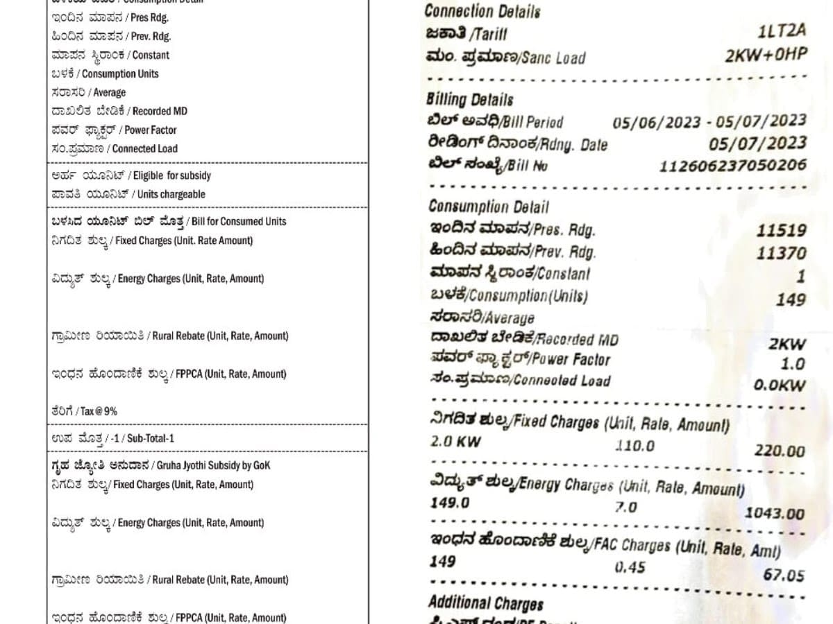 ಗೃಹ ಜ್ಯೋತಿಯ ಶೂನ್ಯದರದ ವಿದ್ಯುತ್ ಬಿಲ್ನಲ್ಲಿ ಸಿಎಂ ಸಿದ್ದರಾಮಯ್ಯ (CM Siddaramaiah) ಮತ್ತು ಡಿಸಿಎಂ ಡಿಕೆ ಶಿವಕುಮಾರ್ (DCM DK Shivakumar), ಇಂಧನ ಸಚಿವರ ಕೆಜೆ ಜಾರ್ಜ್ (KJ George) ಅವರ ಭಾವಚಿತ್ರ ಹಾಗೂ ಗೃಹಜ್ಯೋತಿ ಲಾಂಛನ ಮುದ್ರಣವನ್ನು ಮುದ್ರಿಸಲಾಗಿದೆ. ಜೊತೆಗೆ ವಿದ್ಯುತ್ ಬಿಲ್ ಸೂಚನೆಗಳು ಹಾಗೂ ಬಿಲ್ ಕುರಿತು ಗ್ರಾಹಕರಿಗೆ ಸಂಪೂರ್ಣ ಮಾಹಿತಿಯನ್ನು ಹಿಂಬದಿಯ ವಿದ್ಯುತ್ ರಶೀದಿಯಲ್ಲಿ ನೀಡಿದ್ದಾರೆ.