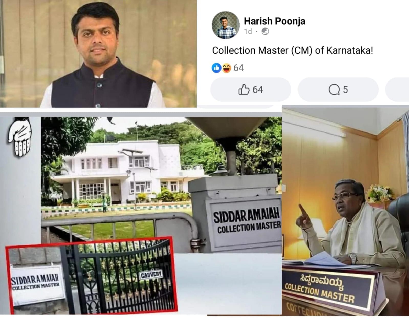 ಹರೀಶ್ ಪೂಂಜ ಅವರು “ಕಲೆಕ್ಷನ್ ಮಾಸ್ಟರ್ (ಸಿಎಂ) ಆಫ್ ಕರ್ನಾಟಕ” ಎಂದು ಬರೆದು ಸಿಎಂ ಸಿದ್ದರಾಮಯ್ಯ (CM Siddaramaiah) ಮತ್ತು ಬೆಂಗಳೂರಿನ ಸಿಎಂ ನಿವಾಸದ ಫೋಟೊ ಪೋಸ್ಟ್ ಮಾಡಿದ್ದಾರೆ ಎನ್ನಲಾಗಿದೆ. ಹೀಗಾಗಿ, ಹರೀಶ್ ಪೂಂಜ ವಿರುದ್ಧ ಕಾಂಗ್ರೆಸ್ ಮುಖಂಡ, ಮಾಜಿ ಜಿಲ್ಲಾ ಪಂಚಾಯತ್ ಸದಸ್ಯ ಶೇಖರ್ ಬೆಳ್ತಂಗಡಿ ಠಾಣೆಗೆ ದೂರು ನೀಡಿದ್ದಾರೆ.ರಾಜ್ಯದ ಮುಖ್ಯಮಂತ್ರಿ ಅವರನ್ನು ಹರೀಶ್ ಪೂಂಜಾ ಅವಹೇಳನ ಮಾಡಿದ್ದಾರೆ ಎಂಬ ಆರೋಪದ ಅನುಸಾರ ಪೊಲೀಸರು ಪ್ರಕರಣ ದಾಖಲಿಸಿದ್ದಾರೆ.