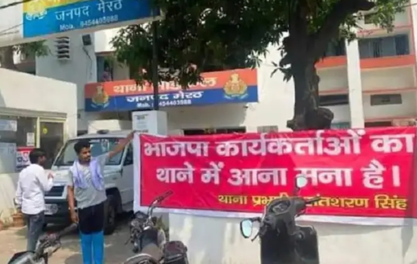 ಬಿಜೆಪಿ ಆಡಳಿತವಿರುವ ಉತ್ತರ ಪ್ರದೇಶದ ಪೊಲೀಸ್ ಠಾಣೆಯೊಂದರ ಮುಂಭಾಗದಲ್ಲಿ ಬಿಜೆಪಿ ಕಾರ್ಯಕರ್ತರು ಠಾಣೆ ಮೆಟ್ಟಿಲು ಹತ್ತುವಂತಿಲ್ಲ ಎಂಬ ಪೋಸ್ಟರ್ ಒಂದು ಇದೀಗ ಭಾರೀ ವೈರಲ್ ಆಗಿದೆ. ಬಿಜೆಪಿ ಕಾರ್ಯಕರ್ತರ ಪ್ರವೇಶವನ್ನು ನಿಷೇಧಿಸಿ ಪೊಲೀಸ್ ಠಾಣೆಯ ಹೊರಗೆ ‘ಆಕ್ಷೇಪಾರ್ಹ ಬ್ಯಾನರ್’ ಹಾಕಿದ್ದ ಆರು ಮಂದಿಯನ್ನು ಉತ್ತರ ಪ್ರದೇಶದ ಪೊಲೀಸರು ಶನಿವಾರ ಬಂಧಿಸಿದ್ದಾರೆ.