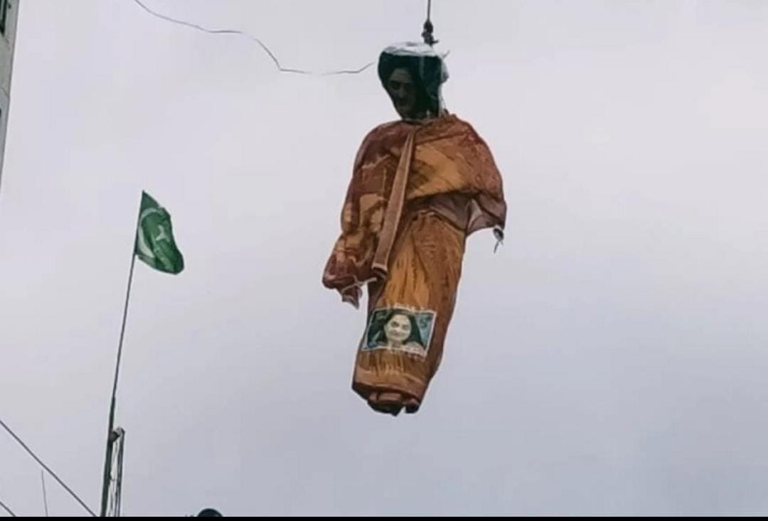ನೂಪುರ್ ಶರ್ಮಾ ಅವರ ಭಾವಚಿತ್ರದ ಸಮೇತ ಅವರ ಪ್ರತಿಕೃತಿಯನ್ನು ನಗರದ ಫೋರ್ಟ್ ರಸ್ತೆಯಲ್ಲಿ ಹಗ್ಗ ಕಟ್ಟಿ, ಗುರುವಾರ ತಡರಾತ್ರಿ ನೇತುಹಾಕಿದ್ದರು.