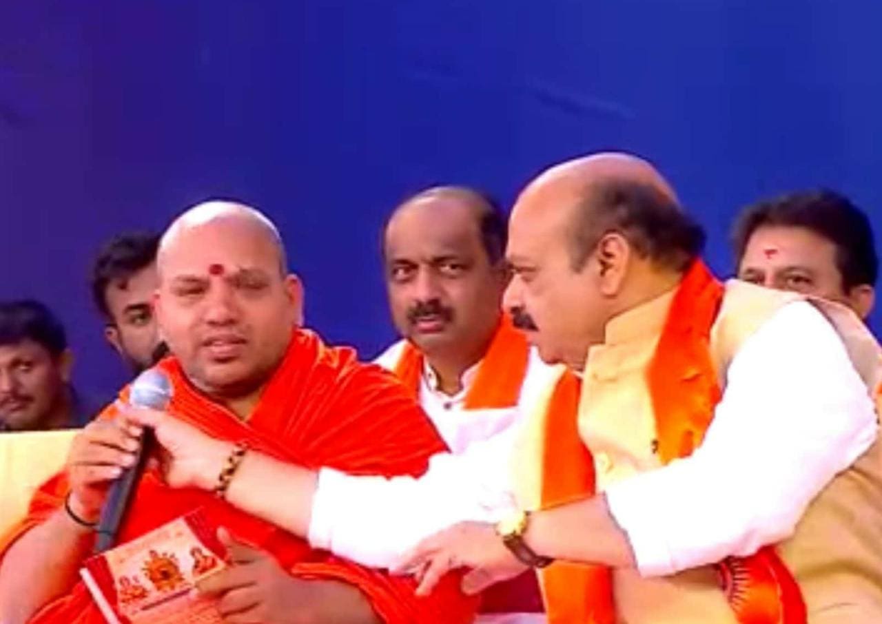 ಬೆಂಗಳೂರಿನ ಗರುಡಾಚಾರ್ ಪಾಳ್ಯದಲ್ಲಿ ಇರುವ ಶ್ರೀ ಮಂಜುನಾಥ ಸ್ವಾಮಿ ದೇವಾಲಯ ಲೋಕಾರ್ಪಣೆ ಸಂದರ್ಭದಲ್ಲಿ ವೇದಿಕೆಯಲ್ಲಿ ಹಾಜರಿದ್ದ ಕಾಗಿನೆಲೆಯ ಈಶ್ವನಂದಪುರಿ ಸ್ವಾಮೀಜಿ ಅವರು ಮುಖ್ಯಮಂತ್ರಿ ಬಸವರಾಜ ಬೊಮ್ಮಾಯಿ ಅವರಿಗೆ ಅಭಿವೃದ್ಧಿ ವಿಚಾರದಲ್ಲಿ ಟಾಂಗ್ ನೀಡಿದರು. ಈ ವೇಳೆ ಸಿಡಿಮಿಡಿಗೊಂಡ ಮುಖ್ಯಮಂತ್ರಿ ಕಾಗಿನೆಲೆ ಸ್ವಾಮೀಜಿ ವಿರುದ್ಧ ಗರಂ ಆಗಿದ್ದಾರೆ.