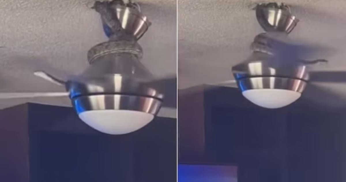 ವಿಡಿಯೋದಲ್ಲಿ ಒಂದೆಡೆ ಟಿವಿ ಆನ್ ಆಗಿದೆ. ಇನ್ನೊಂದೆಡೆ ಫ್ಯಾನ್ ತಿರುಗುತ್ತಿದೆ. ಸೂಕ್ಮವಾಗಿ ಗಮನಿಸಿದ್ರೆ ಫ್ಯಾನ್ ಮಾತ್ರ ತಿರುಗುತ್ತಿಲ್ಲ. ಜೊತೆಗೆ ಸೀಲಿಂಗ್ ಫ್ಯಾನ್ ನಲ್ಲಿ ಹಾವೊಂದು ಸುತ್ತಿಕೊಂಡಿದೆ. ನೋಡುವಾಗ ಹಾವು ತಿರುಗುವ ಫ್ಯಾನಿನ ಏಟಿನಿಂದ ತಪ್ಪಿಸಿಕೊಂಡು ತನ್ನನ್ನು ರಕ್ಷಿಸಿಕೊಳ್ಳಲು ಕೆಳಗೆ ಹರಿಯಲು ನೋಡುತ್ತಿದೆ. ಆದರೆ, ತಿರುಗುವ ಫ್ಯಾನಿನ ರೆಕ್ಕೆಗಳು ಹಾವನ್ನು ಸುಮ್ಮನೆ ಬಿಡದೆ ಘಾಸಿಗೊಳಿಸುತ್ತಿದೆ. ಮುಂದೇನಾಯ್ತು ಗೊತ್ತಾ?