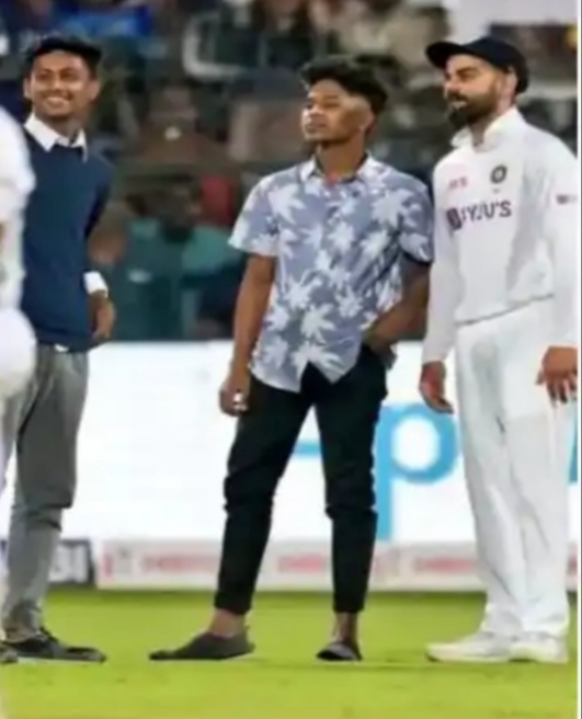 ಬೆಂಗಳೂರಿನಲ್ಲಿ ನಡೆಯುತ್ತಿರುವ ಭಾರತ ಮತ್ತು ಶ್ರೀಲಂಕಾ ನಡುವಿನ ಡೇ ನೈಟ್ ಟೆಸ್ಟ್ನ ಎರಡನೇ ದಿನದಂದು, ಆಟದ ಅಂತಿಮ ಕ್ಷಣಗಳಲ್ಲಿ ಮೂವರು ಆಭಿಮಾನಿಗಳು ಮೈದಾನಕ್ಕೆ ನುಗ್ಗಿ, ವಿರಾಟ್ ಕೊಹ್ಲಿಯ ಜೊತೆ ಸೆಲ್ಫಿ ಕ್ಲಿಕ್ಕಿಸಿಕೊಂಡರು.ಆದ್ರೆ, ಕೊಹ್ಲಿ ಕೂಡ ಅವರನ್ನ ತಡೆಯಲು ಸಾಧ್ಯವಾಗ್ಲಿಲ್ಲ. ಇದಾದ ಬಳಿಕ ಭದ್ರತಾ ಸಿಬ್ಬಂದಿ ಅವರನ್ನ ಹೊರದಬ್ಬಿದರು. ಶ್ರೀಲಂಕಾದ ಎರಡನೇ ಇನಿಂಗ್ಸ್ನ ಆರನೇ ಓವರ್ನಲ್ಲಿ ಮೊಹಮ್ಮದ್ ಶಮಿ ಹೊಡೆತಕ್ಕೆ ಒಳಗಾಗಿ ಕುಸಲ್ ಮೆಂಡಿಸ್ ಚಿಕಿತ್ಸೆ ಪಡೆಯುತ್ತಿದ್ದಾಗ ಈ ಘಟನೆ ಸಂಭವಿಸಿತು.