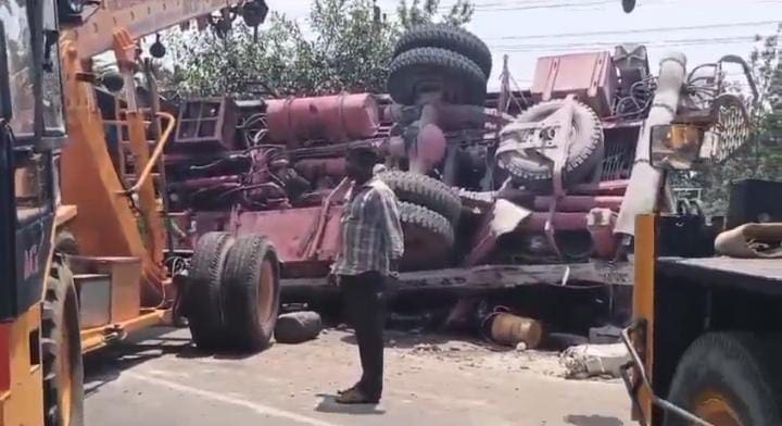 Kodagu: ಪಲ್ಟಿಯಾದ ಬೋರ್ ವೆಲ್ ಲಾರಿಯಿಂದ ಡೀಸೆಲ್ ಸೋರಿಕೆ ಆಗುತ್ತಿದ್ದುದರಿಂದ ಅನಾಹುತ ತಪ್ಪಿಸಲು ಕಾರ್ಯಾಚರಣೆ ನಡೆಸುತ್ತಿದ್ದ ಅಗ್ನಿಶಾಮಕ ವಾಹನಕ್ಕೆ ಕ್ರೇನ್ ವಾಹನ ಡಿಕ್ಕಿ ಹೊಡೆದಿರುವ ಮತ್ತು ಪಾದಚಾರಿಯೋರ್ವ ಕಾಲು ಮುರಿದುಕೊಂಡು ಆಸ್ಪತ್ರೆಗೆ ದಾಖಲಾಗಿರುವ ಘಟನೆ ವರದಿಯಾಗಿದೆ.