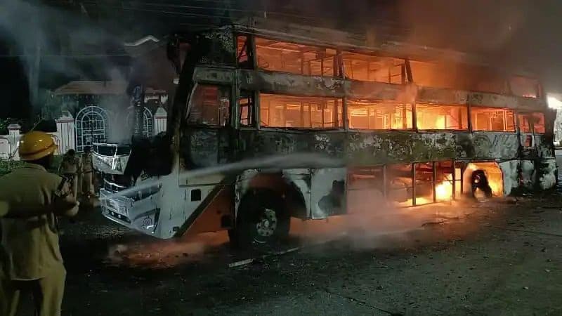 Fire: ಬೆಂಗಳೂರು ಮಂಗಳೂರು ರಾಷ್ಟ್ರೀಯ ಹೆದ್ದಾರಿಯಲ್ಲಿ ಖಾಸಗಿ ಟ್ರಾವೆಲ್ಸ್ ಬಸ್ ಒಂದು ಹೊತ್ತಿ ಉರಿದಿದ್ದು ಅದರಲ್ಲಿರುವ 25 ಪ್ರಯಾಣಿಕರು ಅದೃಷ್ಟವೆಂಬಂತೆ ಪಾರಾಗಿದ್ದಾರೆ.