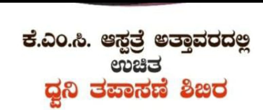 Mangaluru: ಮಂಗಳೂರು (Mangaluru) ಅತ್ತಾವರ ಕೆ.ಎಂ.ಸಿ. ಆಸ್ಪತ್ರೆಯ ಕಿವಿ, ಮೂಗು ಮತ್ತು ಗಂಟಲು ವಿಭಾಗವು ಎಪ್ರಿಲ್ 7ರಂದು ಬೆಳಗ್ಗೆ 9.30ರಿಂದ ಮಧ್ಯಾಹ್ನ 12.30ರವರೆಗೆ ಉಚಿತ ಧ್ವನಿ ತಪಾಸಣೆ ಶಿಬಿರವನ್ನು ಆಸ್ಪತ್ರೆಯ ಕಿವಿ, ಮೂಗು ಮತ್ತು ಗಂಟಲು ವಿಭಾಗದಲ್ಲಿ ಆಯೋಜಿಸಿದೆ.