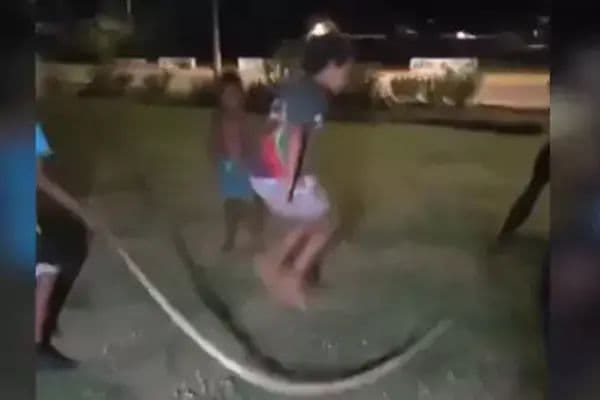Viral Video : ಸುಮಾರು 8 ಅಡಿ ಉದ್ದದ ಹೆಬ್ಬಾವನ್ನು ಹಿಡಿದು ಮಕ್ಕಳು ಹಗ್ಗದಂತೆ ಬಳಸುತ್ತಾ ಸ್ಕಿಪ್ಪಿಂಗ್ ಆಡಿದ ವಿಡಿಯೋ ಒಂದು ಸಾಮಾಜಿಕ ಜಾಲತಾಣದಲ್ಲಿ ವೈರಲ್ ಆಗಿದೆ.