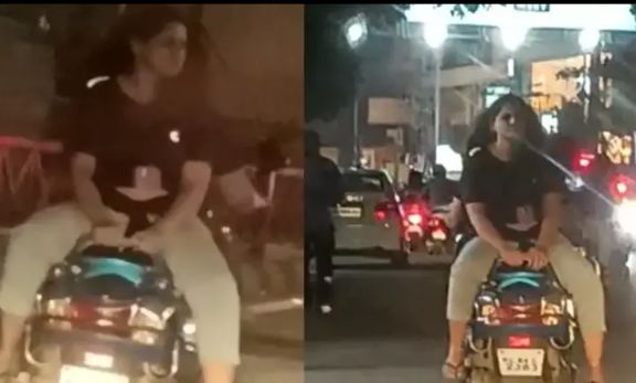 ಹೌದು ಇಲೆಕ್ಟ್ರಾನಿಕ್ ಸಿಟಿಯಲ್ಲಿ ಯುವತಿಯೊಬ್ಬಳು ಸ್ಕೂಟರ್ನ ಹಿಂಬದಿಯಲ್ಲಿ, ಹಿಮ್ಮುಖವಾಗಿ ಕುಳಿತು ತೂರಾಡುತ್ತ, ಮೈಬಳುಕಿಸುತ್ತಿದ್ದ ವಿಡಿಯೋ ಸೋಷಿಯಲ್ ಮೀಡಿಯಾದಲ್ಲಿ ವೈರಲ್ ಆಗಿದೆ.